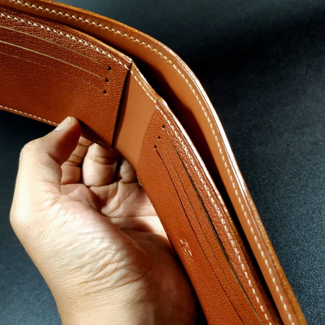 Compact bifold wallet…with 8 card slots and a cash compartment. Handcrafted using brown vagetable full grain leather. Full hand sewn with diamond chisel 3mm. Beige color thread 0.5mm …dm for custom orders